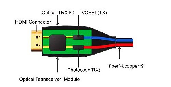 The Structure of HDMI Active optic fiber cable.