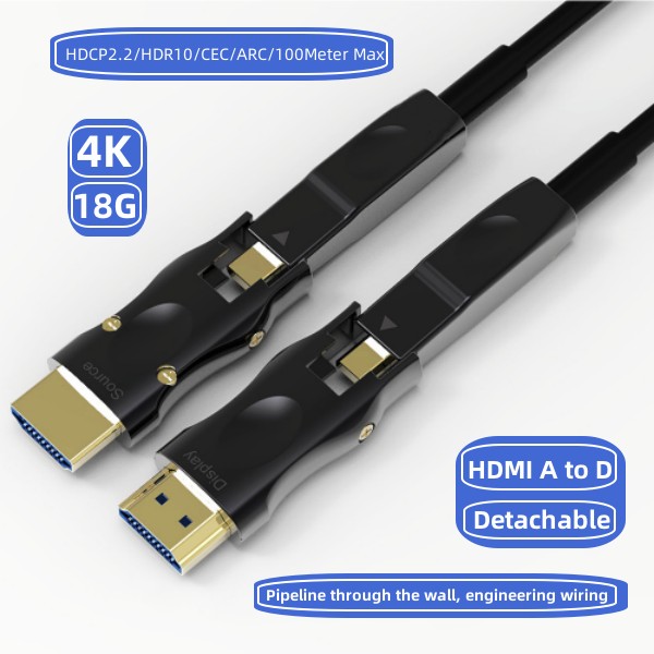 •  HDMI 2.0 Type A to D Both Side Detachable HDMI engineering fiber cable 2.0 version of 4K60Hz
