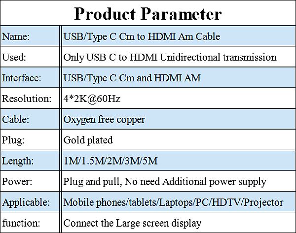 Name:USB/type c to hdmi cable
