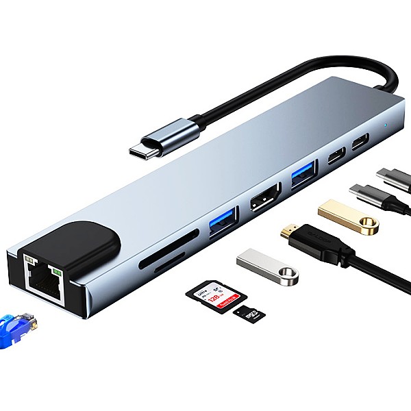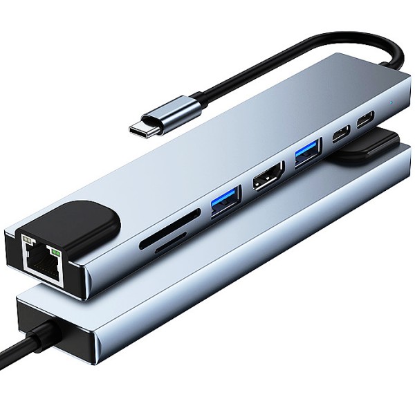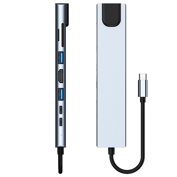Interface:TYPE-C to HDMI+RJ45+USB3.0*1+USB2.0*1+PD+SD+TF +Type-C data