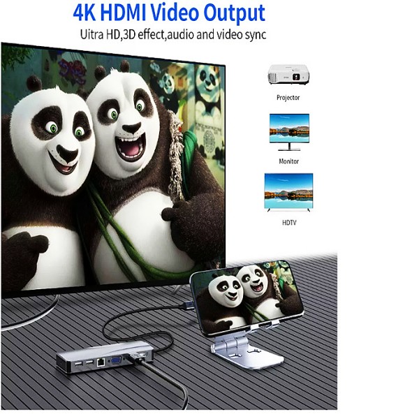 Interface:TYPE-C to HDMI+USB3.0+VGA+PD