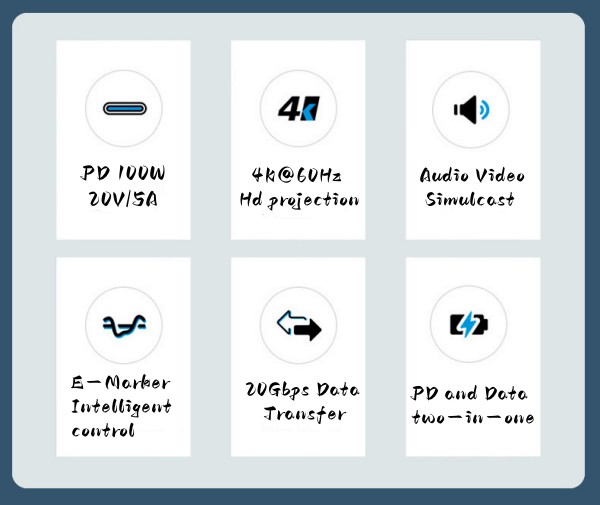 1, Data transfer of USB3.2/USB3.1/USB3.0/USB2.0 devices with USB C interface.