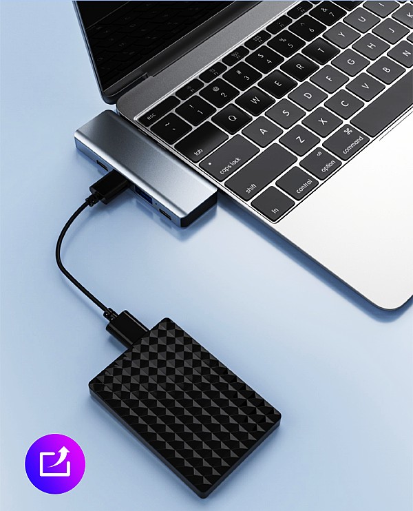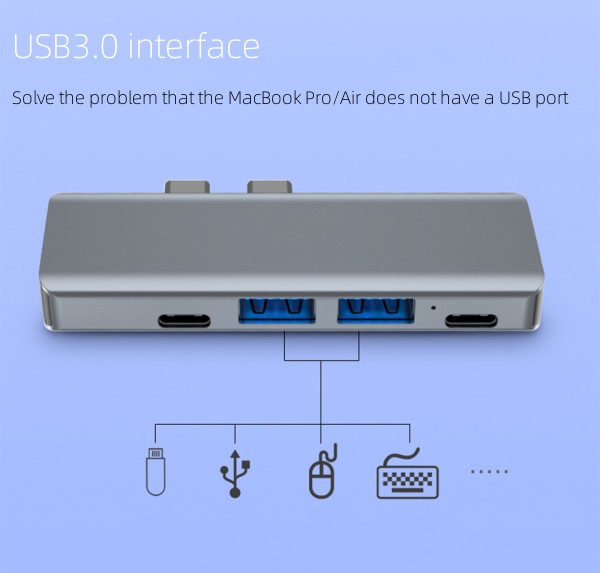 [USB 3.0 and power port] The high-speed USB 3.0 transfer rate is up to 5 Gbps, suitable for USB flash drives, mice, keyboards and other USB A 2.0 / USB A 3.0 devices. High-definition movies can be transmitted in a short time. At the same time, Type-C charging can quickly output up to 60W of power to avoid running out of power during use