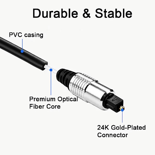 1. Audio Fiber Cable is a must-have cable for multi-channel (5.1, 6.1, and 7.1) Dolby AC-3 / DTS decoding for a variety of