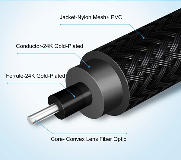 7. Fiber-optic cable prevents electromagnetic and radio frequency interference that an electrical cable would incur, .resulting in better sonic accuracy and a more natural sound