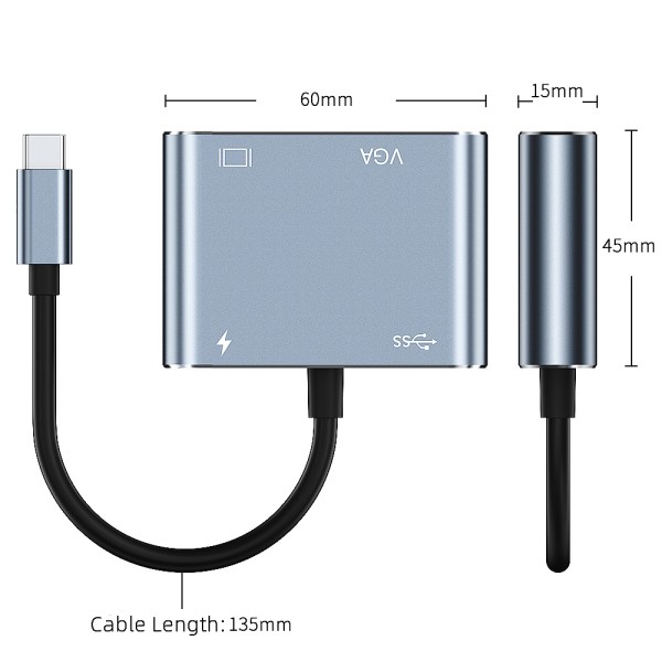 Interface:TYPE-C to HDMI+USB3.0+VGA+PD