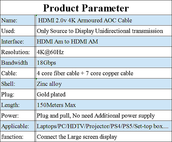 Name:HDMI 2.0v 4K Armoured AOC cable