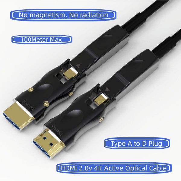 •  HDMI 2.0 Type A to D Both Side Detachable HDMI engineering fiber cable 2.0 version of 4K60Hz
