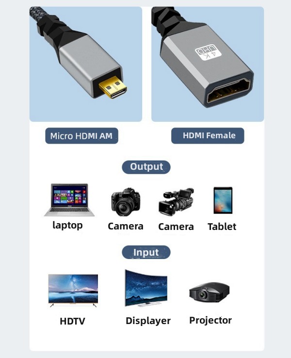 Name:Micro HDMI Male to HDMI female 2.0v 4K cable