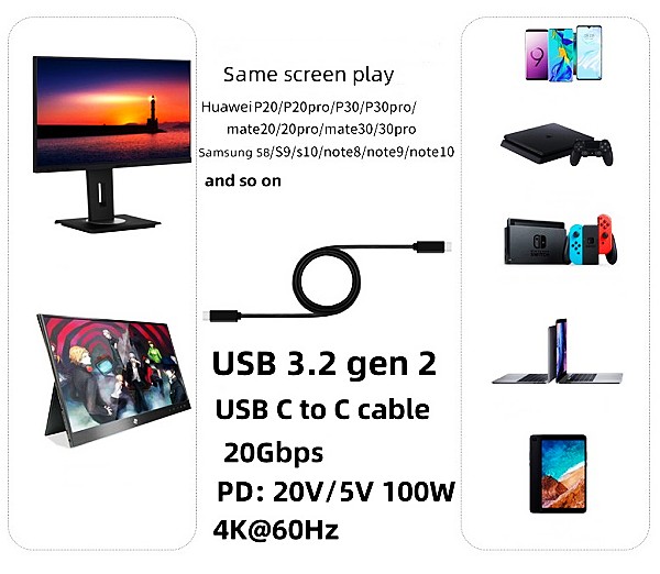 1, Data transfer of USB3.2/USB3.1/USB3.0/USB2.0 devices with USB C interface.