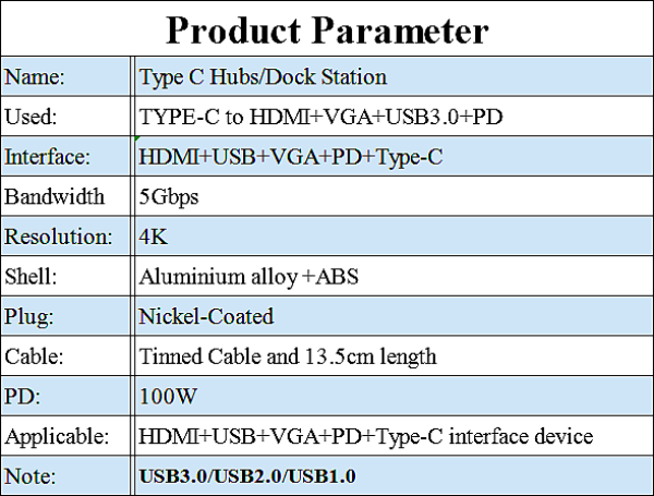 Interface:TYPE-C to HDMI+USB3.0+VGA+PD