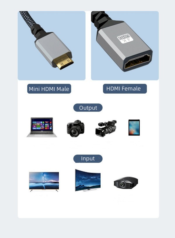Name:Mini HDMI Male to HDMI female 2.0v 4K cable